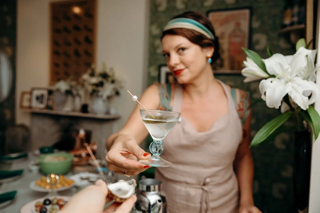 “Out of her charming walkup apartment in Manhattan’s Midtown East neighborhood, she hosts a weekly series called Regarding Oysters: An evening of bivalves and curated cocktails.”